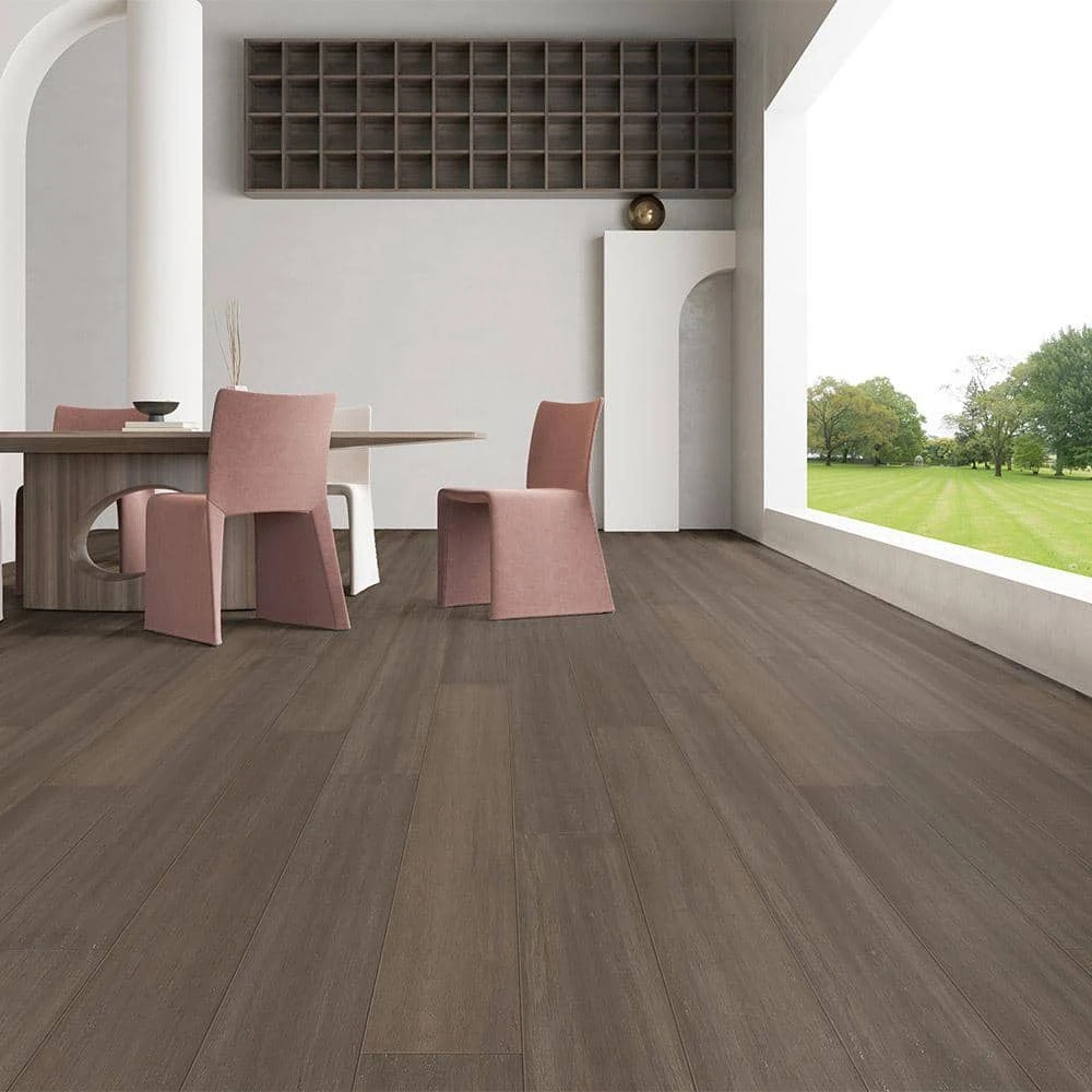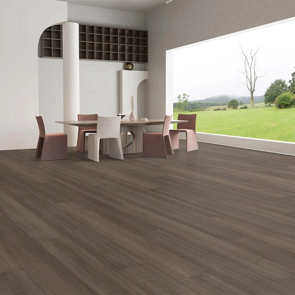 - Prefinished Grey Dark Color, Low Gloss, Hand Scraped Finish