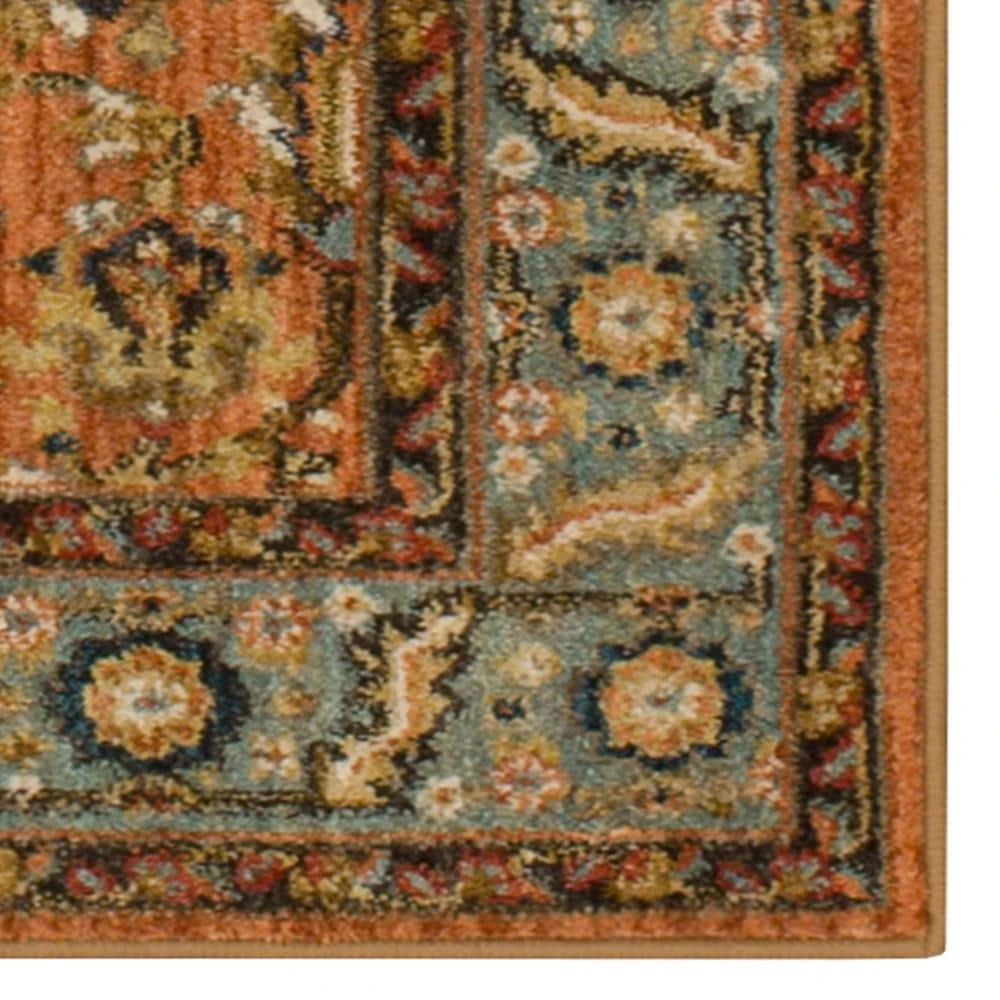 The Mariah woven area rug features a traditional pattern with ornate detailing in rich Mediterranean colors, including aquamarine, spice, gold, charcoal, taupe, citron, cream and tobacco. Its stain and fade resistant properties make it a great choice for busy families. Made of 100% polyester, this rug is sumptuously soft and will add an element of style to any living space.