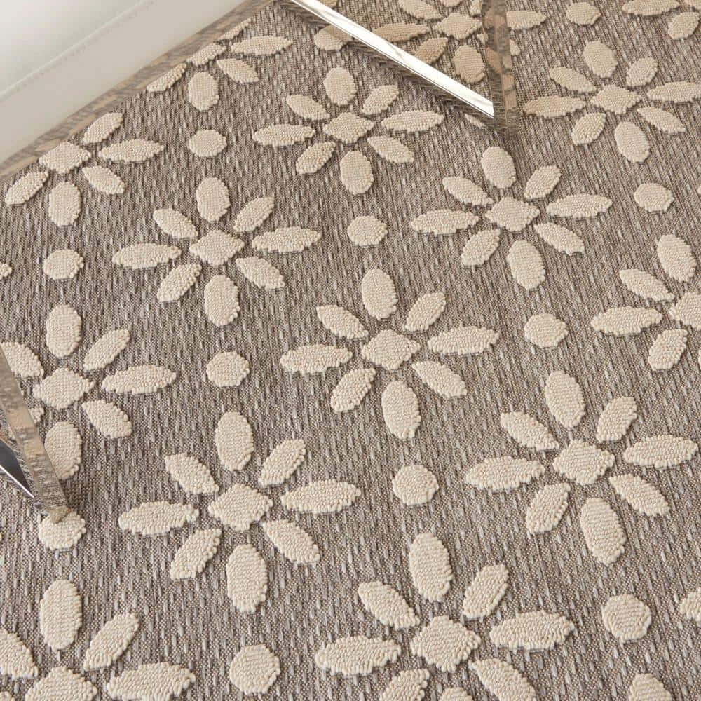 Can a rug sturdy enough for both indoor and outdoor use also be chic and attractive? For sure, if it’s from the Palamos Area Rug Collection. These durable and fade-resistant area rugs are ideal for the casual lifestyle and work just as well in covered outdoor locations such as patio or porch as they do in your living room, family room or other favorite spot. Distinguished by their high-low pile, Palamos area rugs take a visual cue from hand-carved rugs but are easily affordable and designed to withstand wear. This contemporary collection ranges from linear and geometric to sprightly florals – all enhanced by dimensional pile in today’s most coveted neutral tones. Decorating is easy (and fun!) with the casual chic of textural Palamos, power-loomed in modern poly-fibers. Creamy flowers pop on this charming area rug from the Palamos Collection. High-low pile adds texture and dimensionality. Narrow self-border; beautifully versatile in soft grey with cream floral detail.